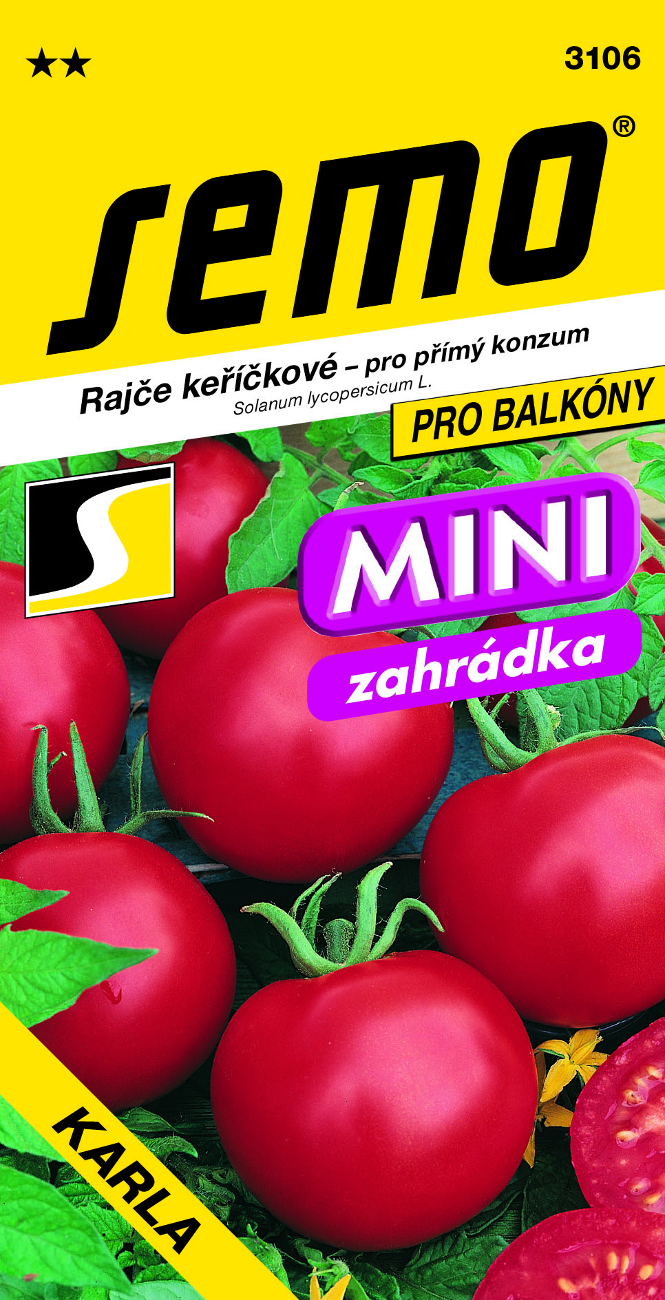 Buschtomate Karla ist eine mittelspäte Sorte mit sehr kompaktem Wuchs, geeignet für Balkone, Frühbeete, kleine Gärten usw. Die Früchte sind flach-rund, groß und sehr fest.