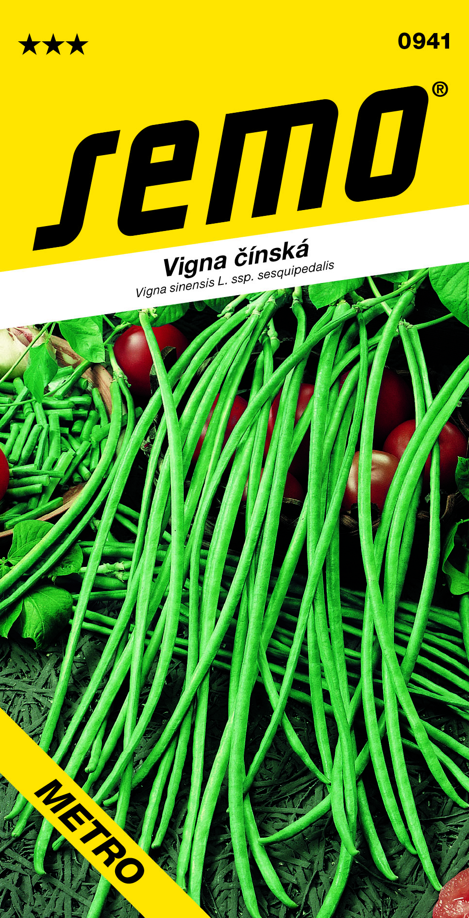 Metro ist botanisch Vigna chinesica. Der Stängel ist rankend, die Hülsen sind dünn, 40 bis 100 cm lang, gerade bis sichelförmig gebogen, an der Oberfläche glatt und dunkelgrün.